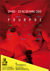 "Pourpre" s'avère donc un travail particulièrement intéressant tant par sa thématique que par sa forme qui repose sur la dramaturgie du corps. Sur le plateau nu, seul un musicien guitariste, Cédric Michon, émerge de l'obscurité. La scénographie repose essentiellement sur les jeux de lumières travaillées par Alice Versieux qui délimitent les espaces de jeu et localise les aires d'apparition des personnages.