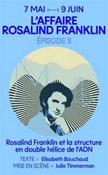 Elizabeth Bouchaud a conçu sa pièce comme un véritable polar... On va voir ce que Rosalind Franklin ne voit pas : comment les quatre hommes qui l'entourent vont peu à peu la plagier, la faire parler, lui voler des documents, bref se relayer pour s'approprier ses intuitions.
